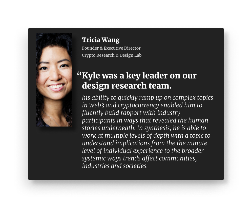 This research was conducted in what was still a very new industry. Over the years, I’ve followed the thread working with many other clients across the crypto industry across a range of interesting and important topics.