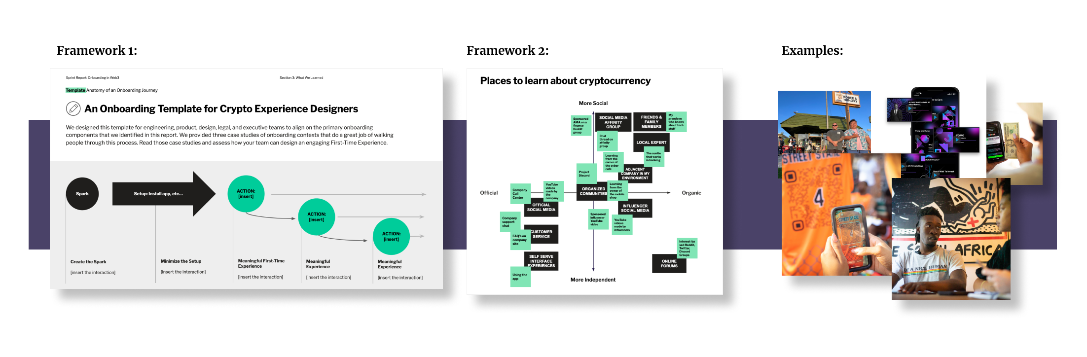 Onboarding to Cryptocurrency was a human-centric report I led with researchers from the Crypto Research and Design lab. in the report, we focused on the human side of what it was like to onboard to crypto through two key frameworks and three example vignettes from the field.
