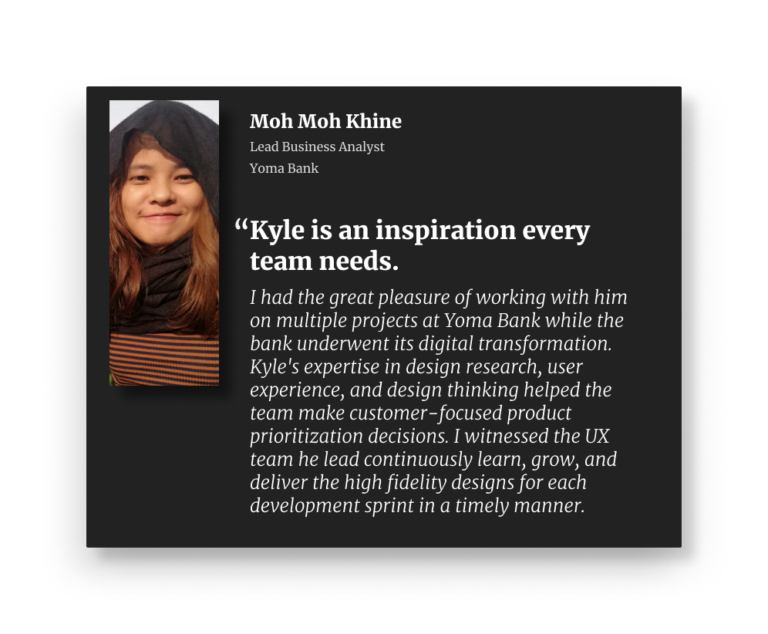 Growing a Design Team in a Burmese Bank is a more detailed case study of the processes and strategy I used to coach the team and build our processes.